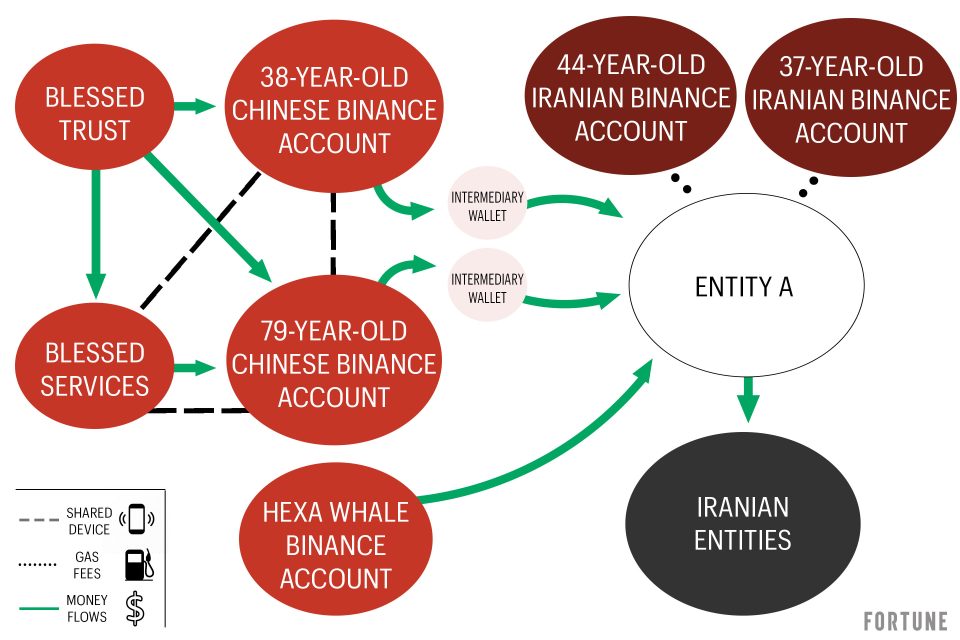 Binance has sought to downplay the links between accounts on its platform and the Iran-linked wallets, arguing in a recent blog post that there were multiple intermediaries between the exchange and the sanctioned wallets. The post also notes that $1.1 billion of the funds flowed into Binance from a “major regulated stablecoin issuer.” In their findings, the investigators wrote that the two Chinese VIP accounts likely received a majority of their funds through stablecoins issued by Circle, the publicly traded U.S. crypto company. “We take our regulatory obligations seriously,” a Circle spokesperson told Fortune, adding that Circle had terminated Blessed Trust as a customer in 2025.