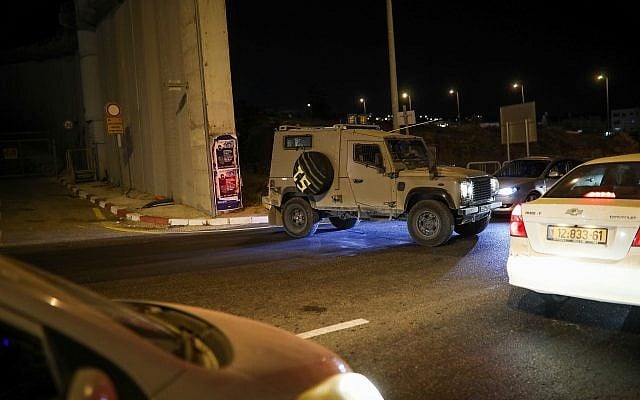 Cars standing in a traffic jam at the Hizma Checkpoint, near the scene of a suspected ramming attack near Jerusalem on July 7, 2019. (Hadas Parush/Flash90)