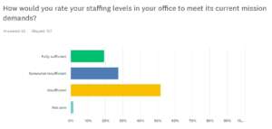 One respondent said the department’s efforts to shrink its workforce through tools such as the deferred resignation program and early retirements have constrained the office’s ability to execute acquisition support and expand outreach to small businesses that bolster the defense industrial base.
