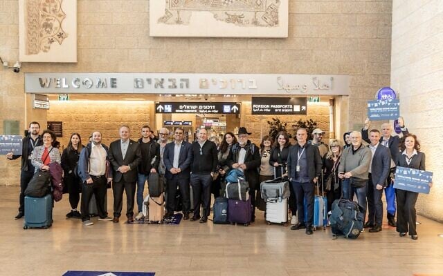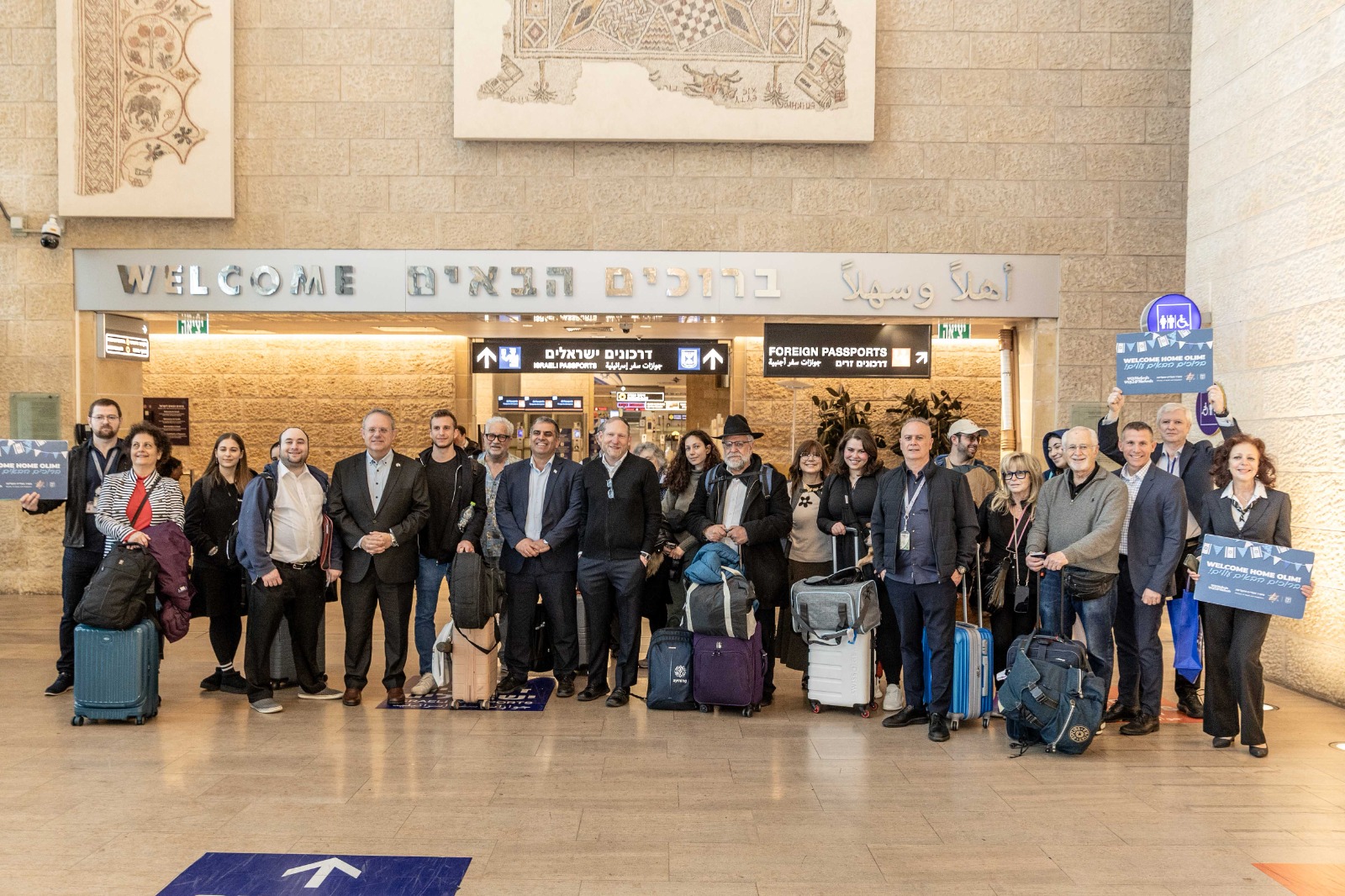 New immigrants arrive at Ben Gurion airport, March 25, 2026. They are welcomed by Immigration and Absorption Minister Ofir Sofer, Nefesh B’Nefesh Co-Founder and Executive Director Rabbi Yehoshua Fass, and Chairman of the World Zionist Organization Yaakov Hagoel (Nefesh B’Nefesh)