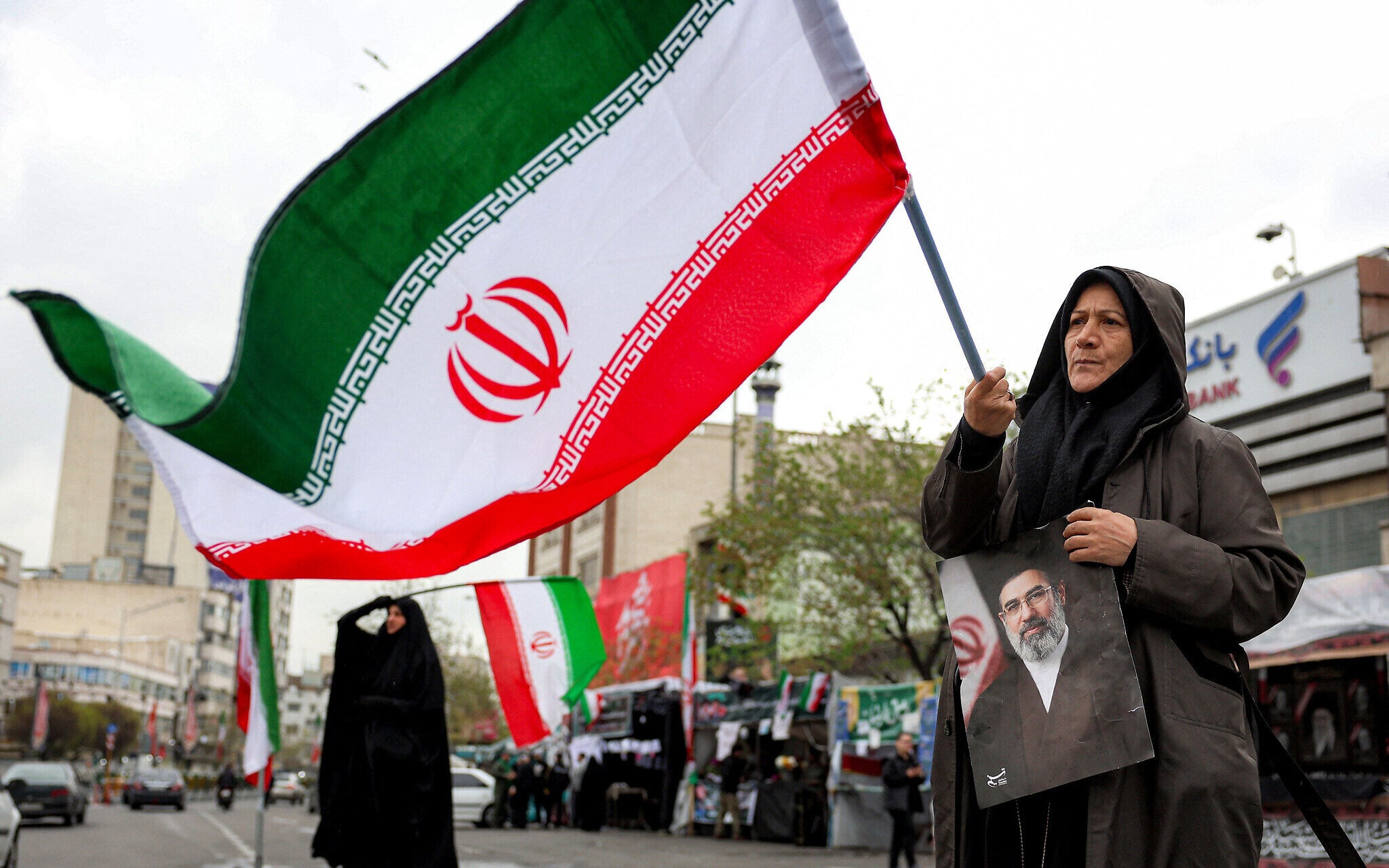 A woman holds a picture of Iran’s new Supreme Leader Mojtaba Khamenei while waving the flag of the Islamic Republic at Enghelab Square in central Tehran, Iran, on March 25, 2026. (AFP)
