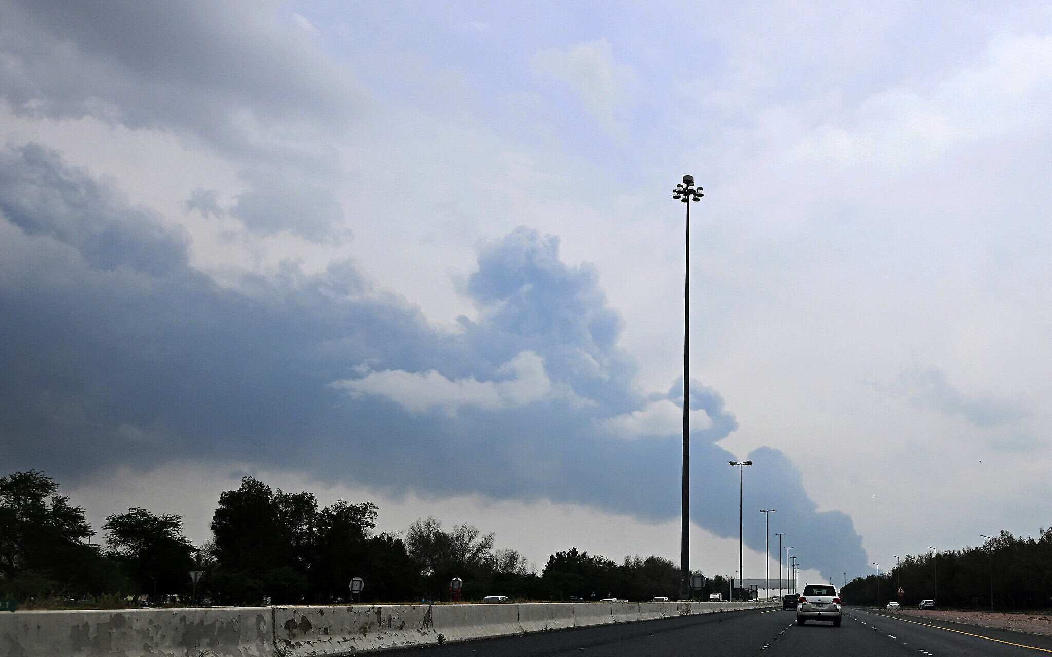 Smoke rises from the area of the Kuwait International Airport after an Iranian drone strike hit a fuel depot, on March 25, 2026. (AFP)