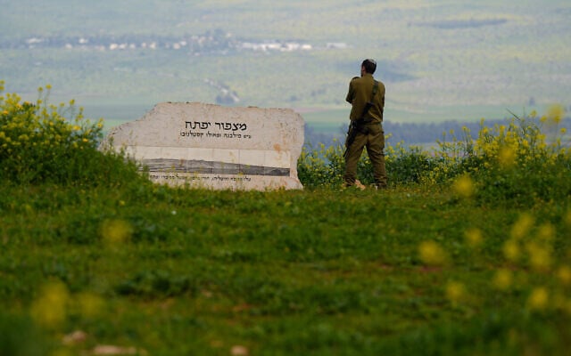 An Israeli soldier stands near the border with Lebanon, March 23, 2026. (Ayal Margolin/Flash90)