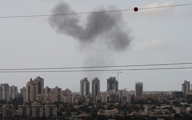 Smoke billows in Beersheba, southern Israel, after it was struck by an Iranian missile, March 29, 2026. (Maya Levin/AP)