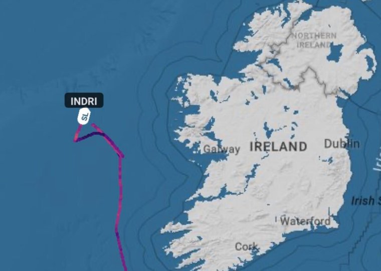 The Indri is now off Ireland’s west coast near, critical undersea cables (Credit: Starboard Maritime Intelligence)