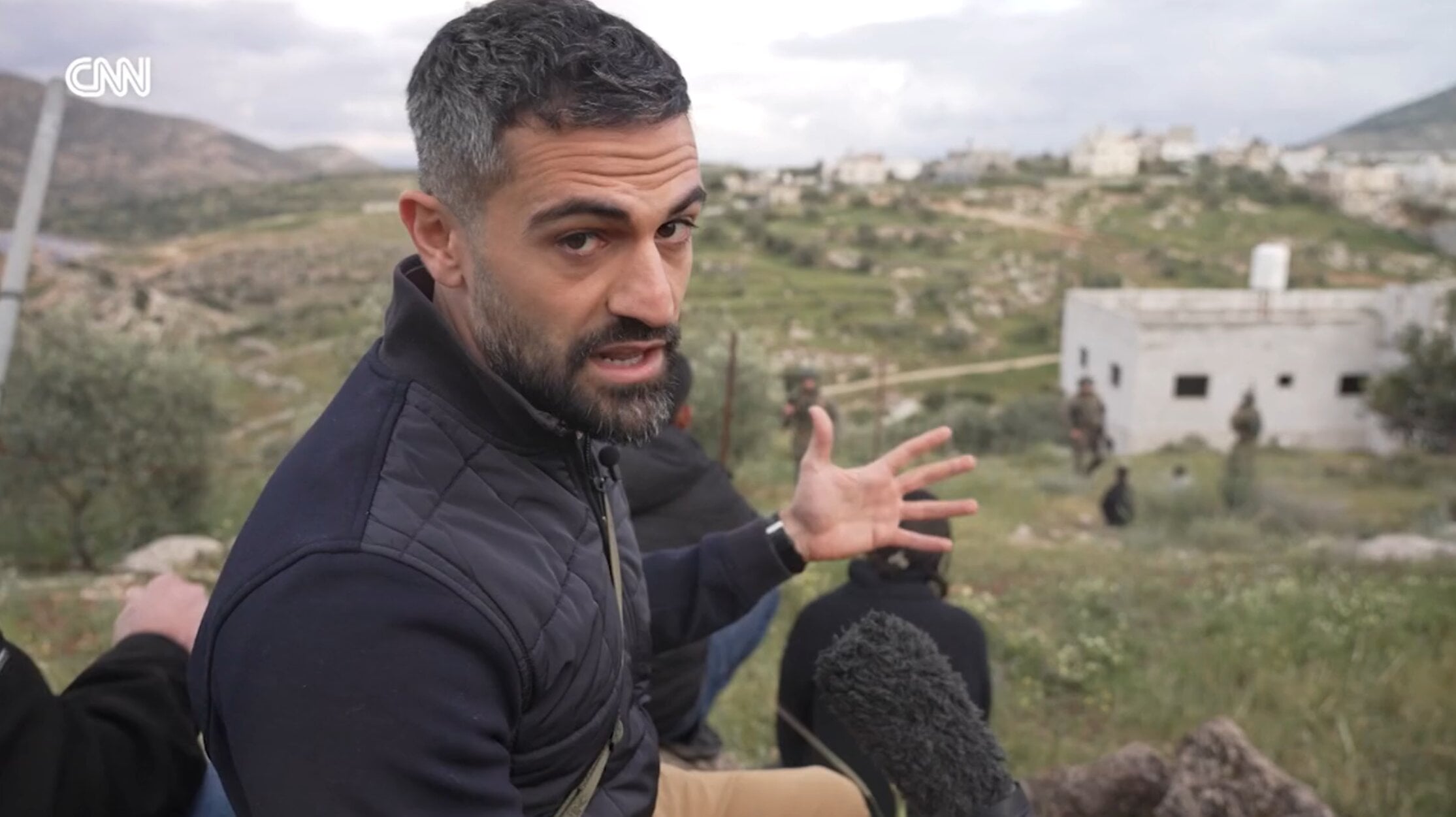 CNN correspondent Jeremy Diamond reporting near the West Bank village of Tayasir shortly before being briefly detained by IDF troops, March 27, 2026. (Screen capture: CNN)