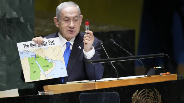 This vision was made unmistakably clear in September 2023, when Netanyahu addressed the United Nations and presented a map of the region that excluded Palestine entirely—a political statement as much as a visual one.