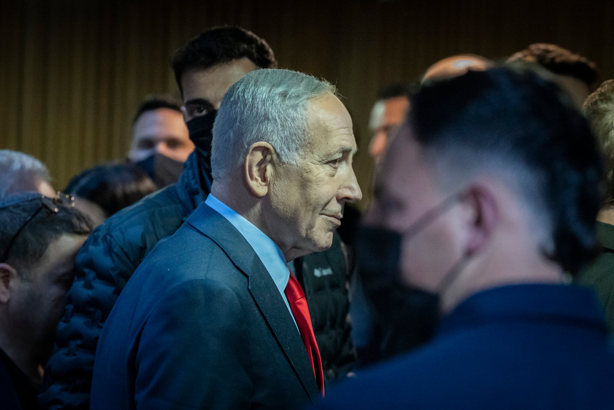 Prime Minister Benjamin Netanyahu arriving at the Knesset plenum, March 30, 2026. (Chaim Goldberg/Flash90)