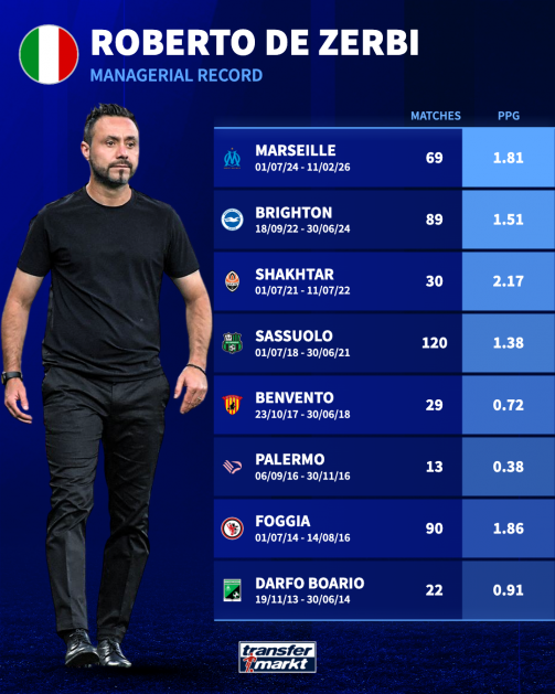 Roberto De Zerbi’s managerial record