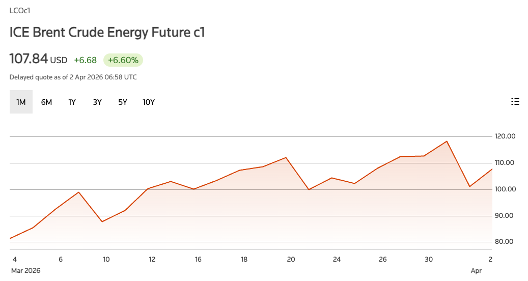 Benchmark Brent crude prices climbed some 6-7% on Thursday, reflecting pessimism in the market for a quick end to the war in the Middle East.