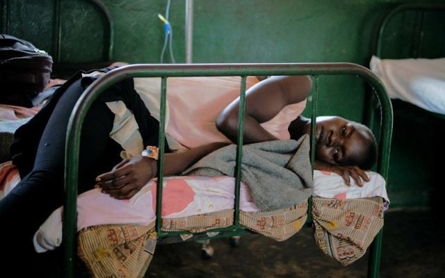 A patient rests on a bed after being discharged from the malaria ward at Panyadoli Health Center III in Kiryandongo refugee settlement, northwestern Uganda, on April 11, 2017. (AFP PHOTO / Esther MABABZI)