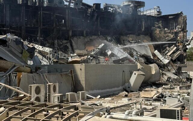 A building of the Weizmann Institute of Science in Rehovot after it suffered a direct hit from an Iranian missile on June 15, 2025. (Courtesy/Prof. Eldad Tzahor of Weizmann)