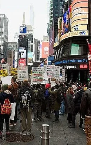 Anti-ICE Times Square protest 2025-02-09 by SWinxy is licensed under CC BY 4.0.