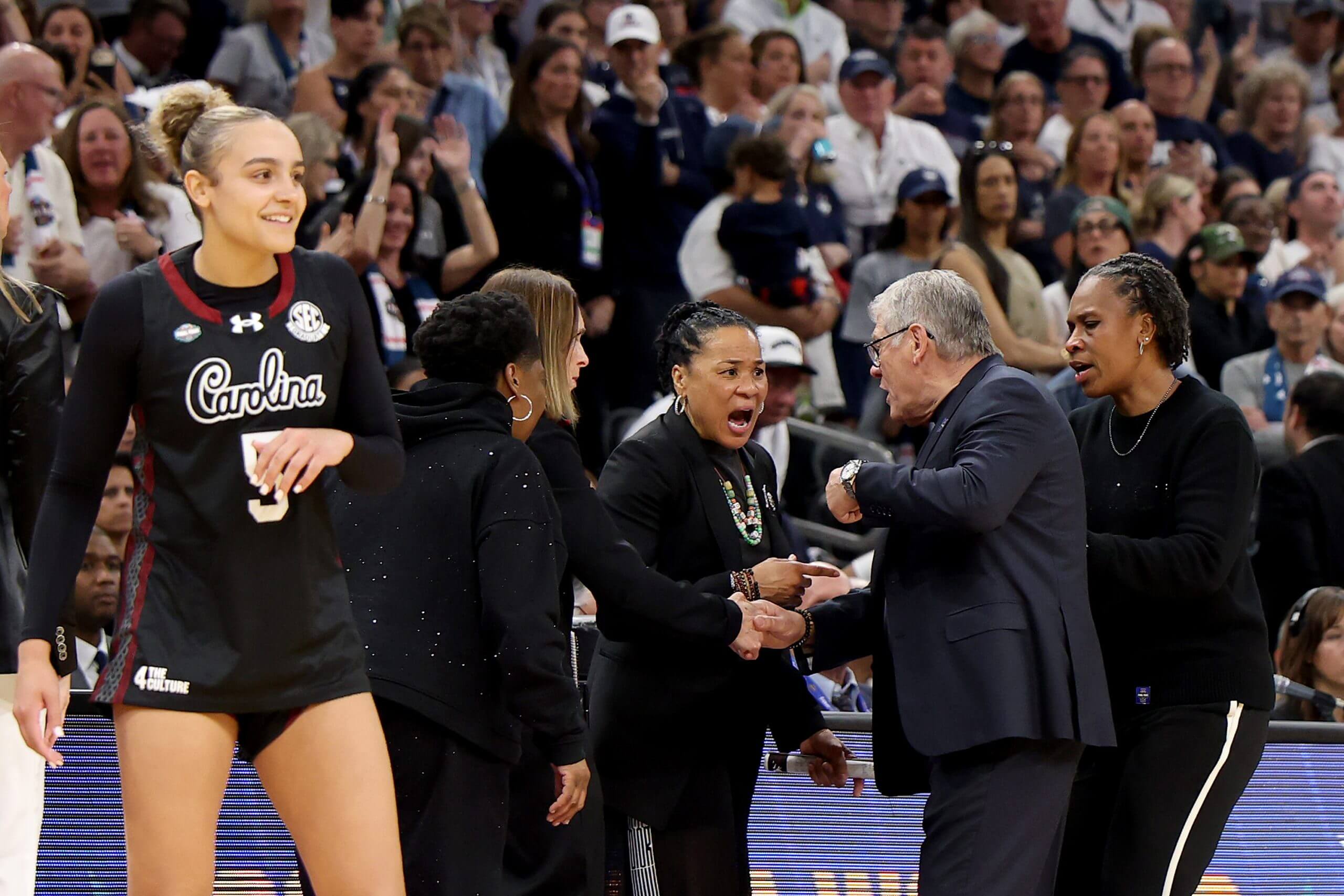 In Friday’s national semifinal, the Gamecocks finally got their revenge. South Carolina beat UConn 62-48 to make its third straight national championship game and fourth in five years. As the final seconds were ticking off, UConn coach Geno Auriemma walked up to South Carolina coach Dawn Staley, and the two exchanged words. Assistant coaches got between them and moved Auriemma away. He walked off the floor after the game and did not go through the handshake line with Staley or anybody from South Carolina, instead leaving for the locker room before any of the players or coaches.