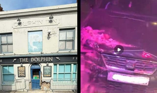 Bouncers and customers in The Dolphin pub in Broadstairs were left in shock as a driver rammed into the building twice in the early hours of this morning (April 4).