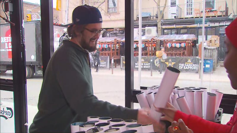 jersey swap A “jersey swap” in Toronto’s Little Italy quickly turned into a giveaway Saturday April 4, 2026 (CP24 photo).