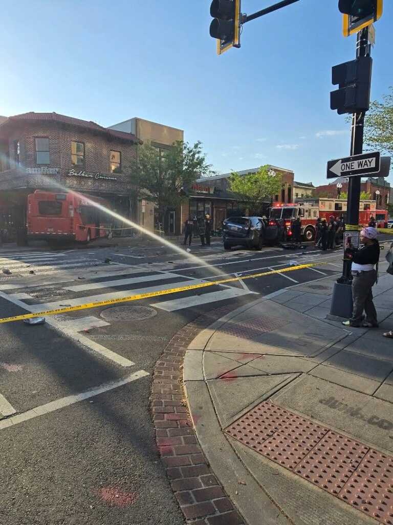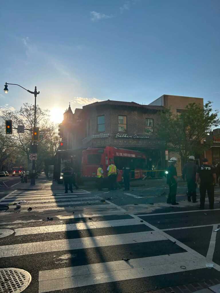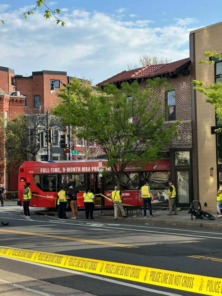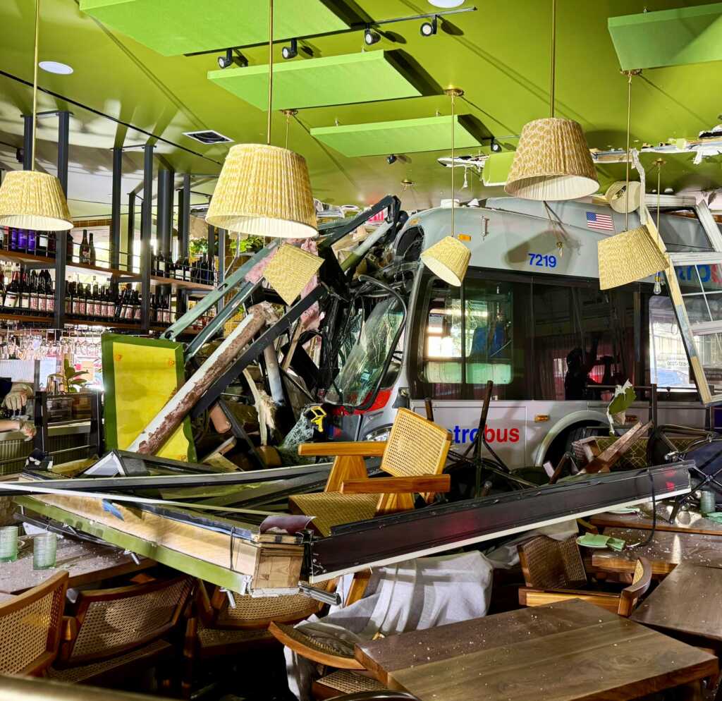 “Update vehicle into structure 7th & Q Sts NW. Bus has been removed from the building. No major structural integrity issues. No shoring required by @dcfireems. Units will be clearing the scene.”