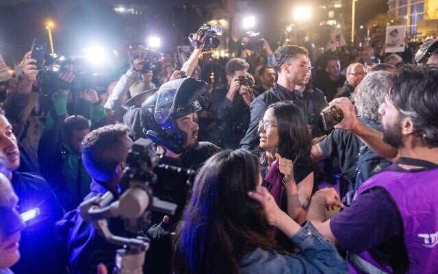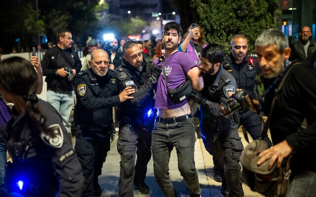 Just before 9 p.m., however, police said the main demonstration at Tel Aviv’s Habima Square had exceeded the court’s 600-protester limit, declared the event unlawful, and violently dispersed the crowd, making 17 arrests.