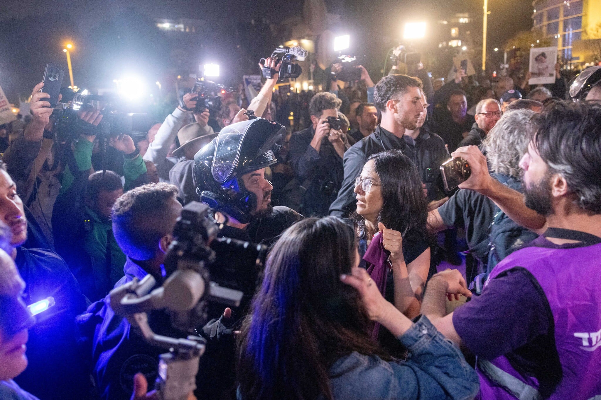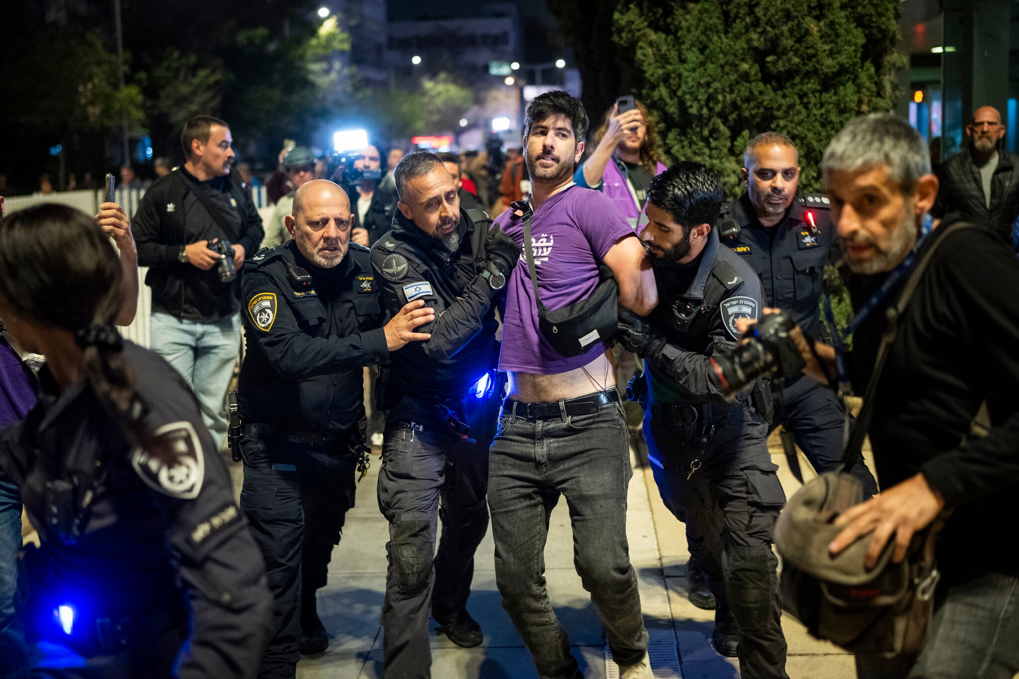 When police adjudged the Habima protest to be too large, the commander at the scene ordered protesters to vacate the plaza, and police began to violently disperse them. Footage from the protest showed police forcefully shoving demonstrators. Mounted officers also arrived at the scene.