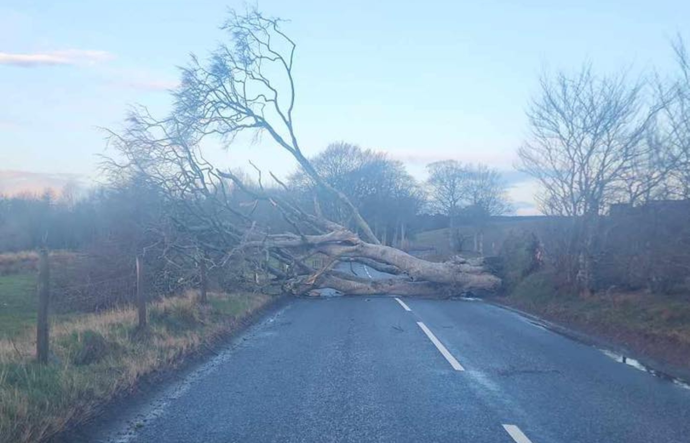 Gusts of up to 73mph were reported in Buchan, with fallen trees blocking some routes and power outages reported.