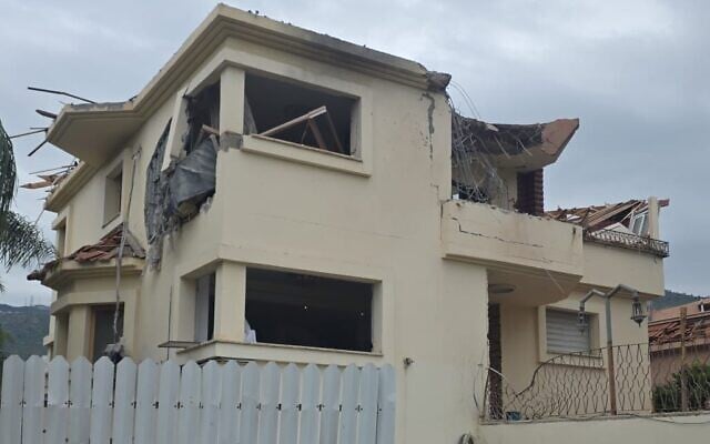 A home in the northern city of Kiryat Shmona is damaged following a Hezbollah rocket attack, April 1, 2026. (Fire and Rescue Service)
