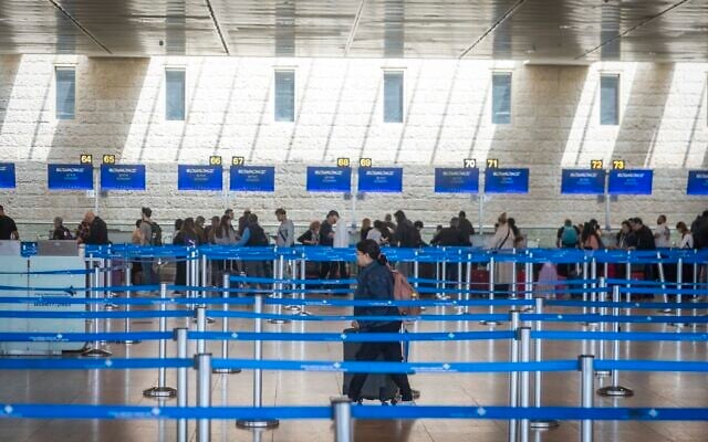 Passengers at Ben Gurion Airport near Tel Aviv after it fully reopened following a ceasefire agreement between United States and Iran, April 9, 2026. (Chaim Goldberg/Flash90)