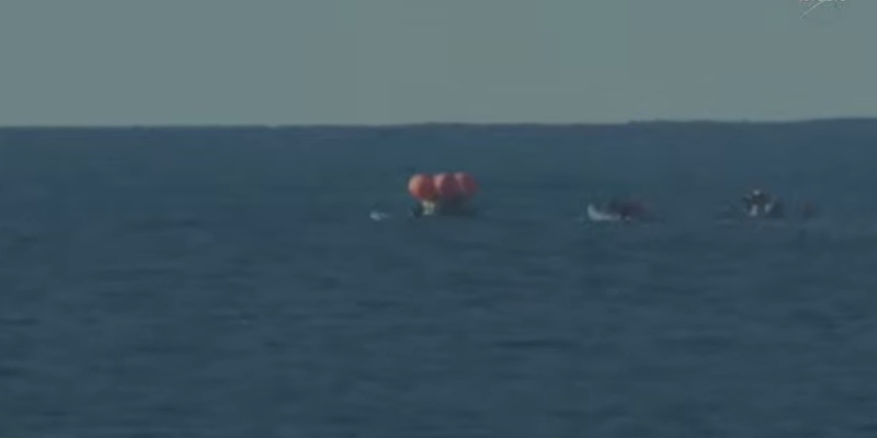 The capsule hurdled through the Earth’s atmosphere at speeds in excess of 24,000 miles an hour before deploying a series of parachutes that slowed it down for a picture perfect landing on the surface of the ocean.