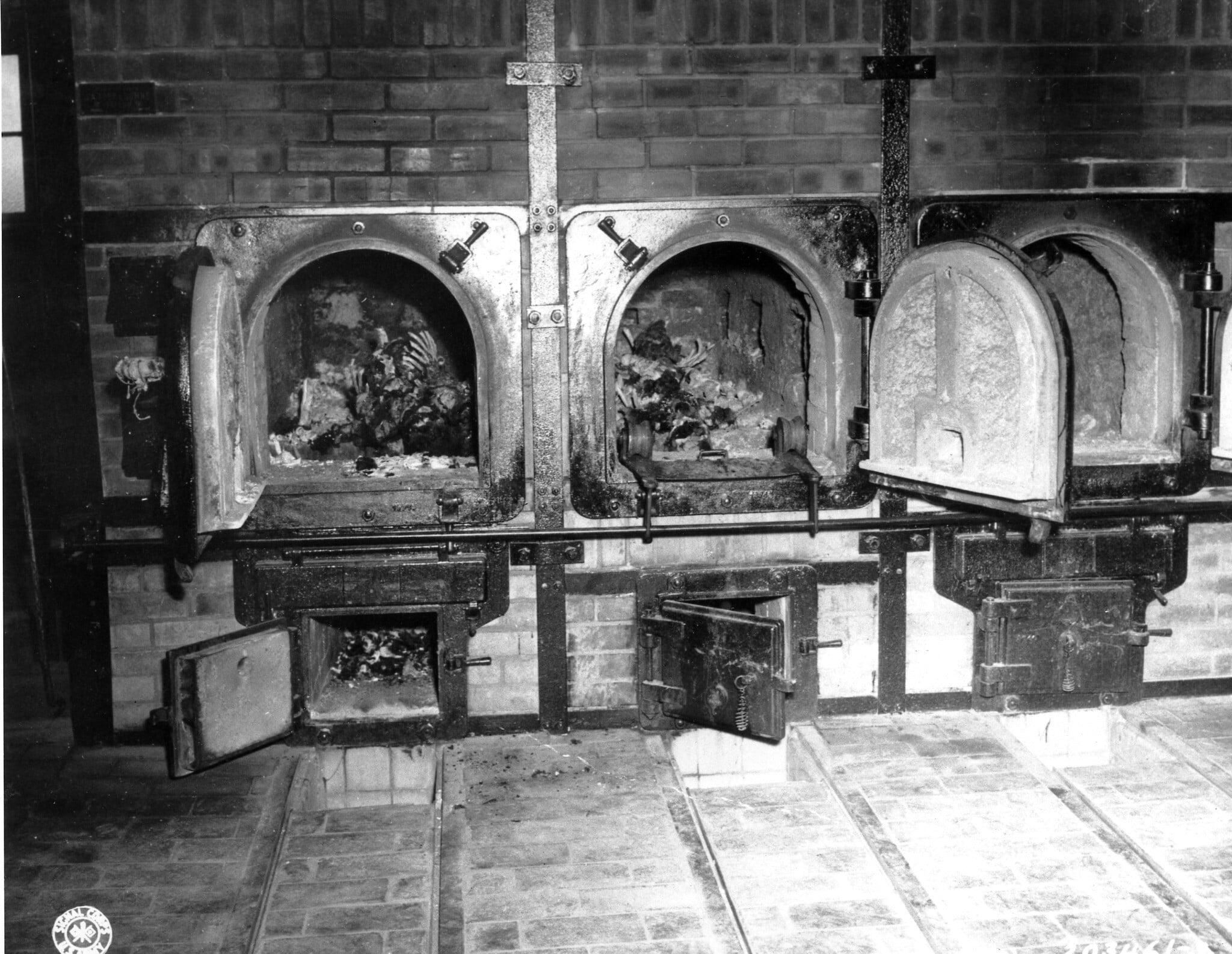Charred remains of bodies can be seen in the crematoria at Buchenwald concentration camp near Weimar, Germany, in April 1945. (AP Photo/US Army Signal Corps)