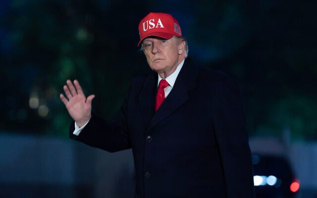 US President Donald Trump waves to reporters as he walks on the South Lawn upon his arrival at the White House, on April 12, 2026, in Washington. (AP/Jose Luis Magana)