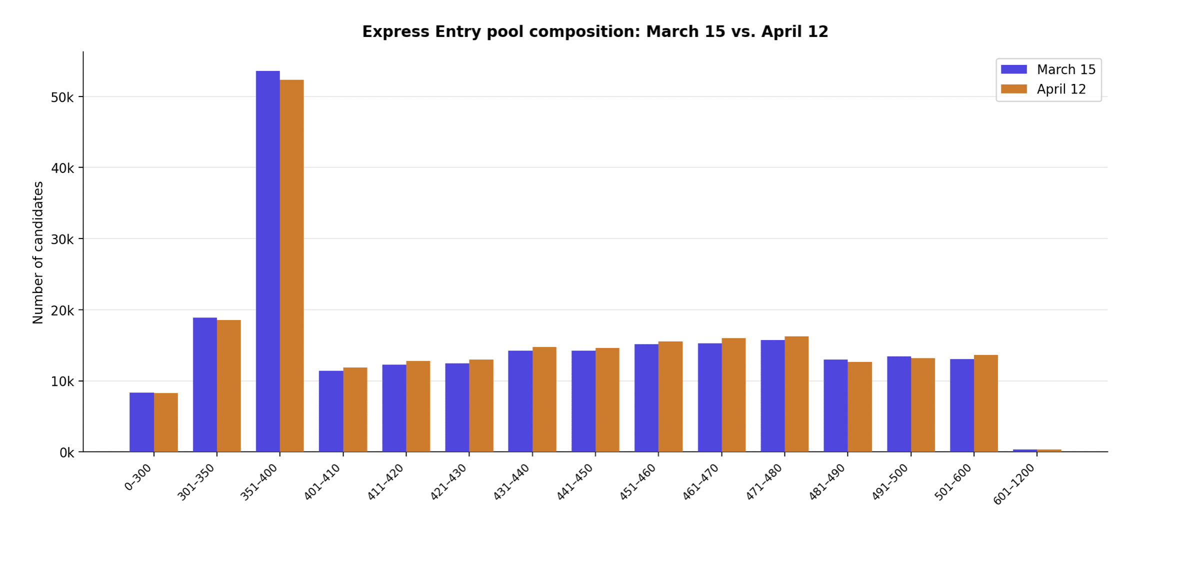 distribution of the Express Entry profiles, between March 15 and April 12