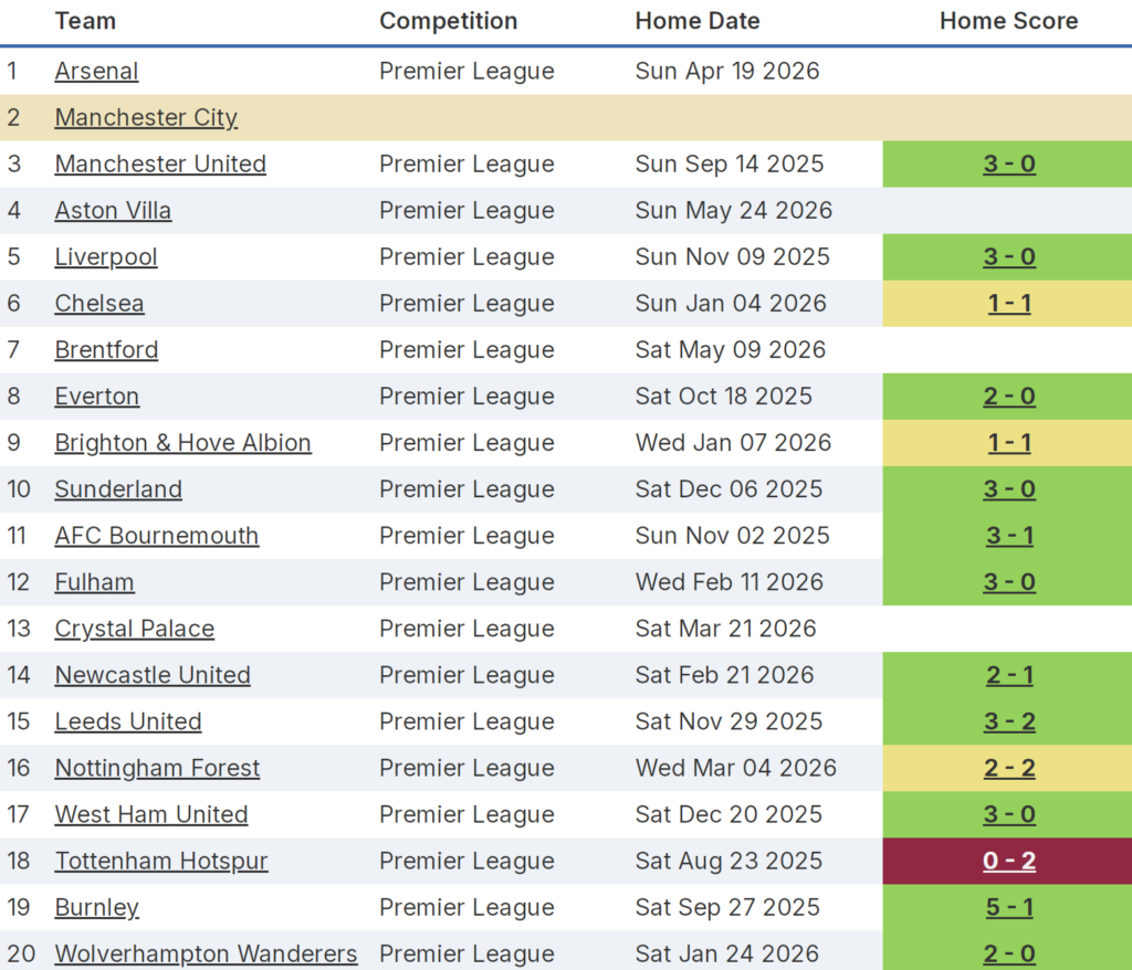 Pep Guardiola’s men have already kept seven clean sheets on home turf this season (see image below), the second-most of any team, and you can bet Arsenal will try to make this as tight and cagey as possible.