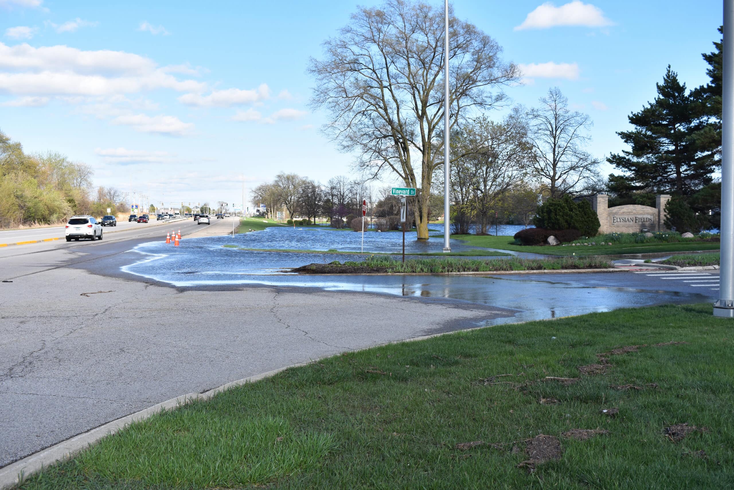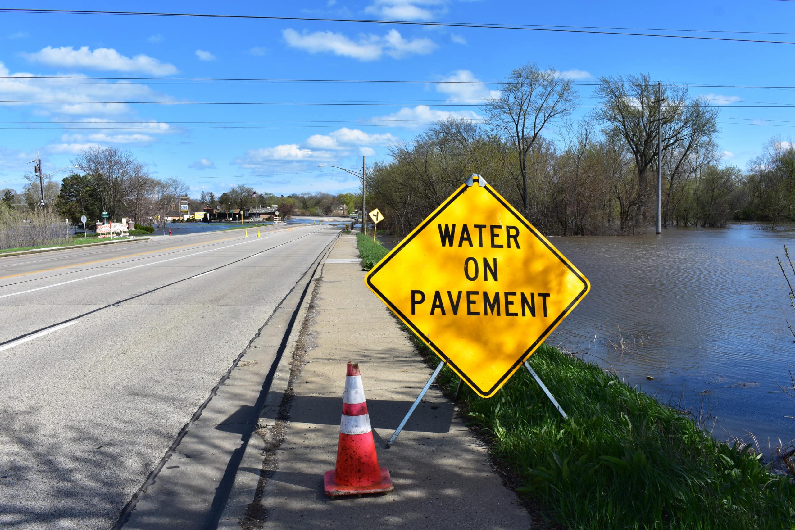 Old Grand Avenue between Grand Avenue and O’Plaine Road and Kilbourne Road between Grand Avenue and Route 41 were closed on Saturday due to water.