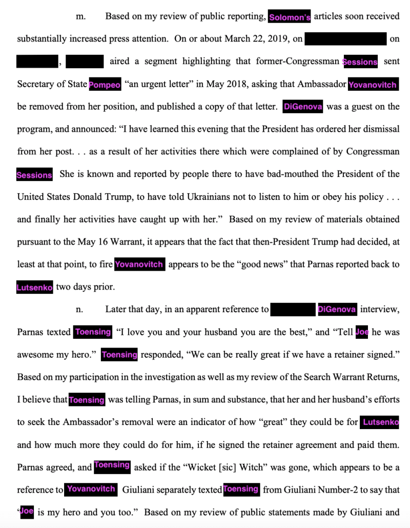 According to warrants from the investigation liberated by NYT, Parnas and Toensing were discussing this appearance in conjunction with getting paid by the Ukrainians.