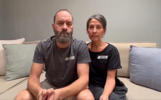 Rachel Goldberg-Polin and Jon Polin, parents of hostage Hersh Goldberg-Polin, issue a video statement pleading for a hostage deal and urging him to stay strong and survive, April 24, 2024. (Courtesy)