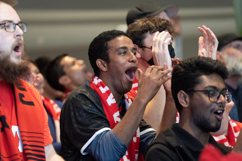 FIFA Fans cheer on Team Canada in their match against Belgium at the FIFA World Cup in Toronto, Canada on November 23rd, 2022. THE CANADIAN PRESS/Arlyn McAdorey