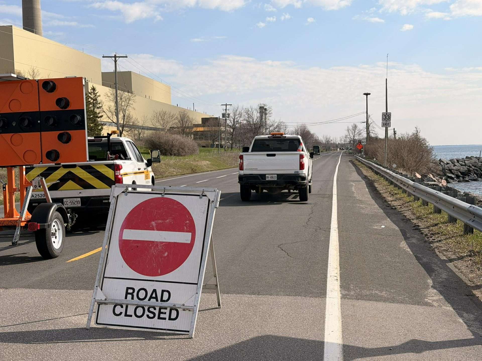 Highway 33 is closed between County Road 21 to the east (near Napanee) and County Road 7/Church Street to the west (in Bath). The OPP East Region said that “the closure is expected to be lengthy” via social media, and noted that workers at the generating stations are “allowed to pass through the closure to access the facility.”