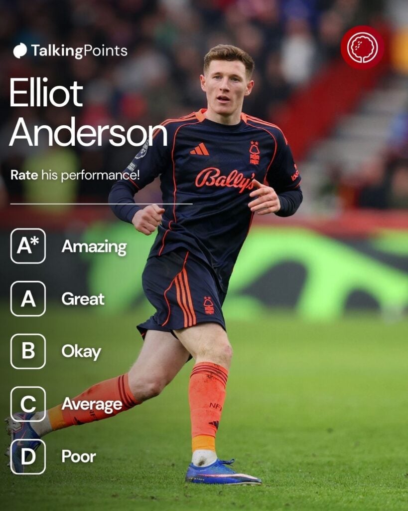 🔠How would you rate Elliot Anderson for his time with Nottingham Forest?🤔