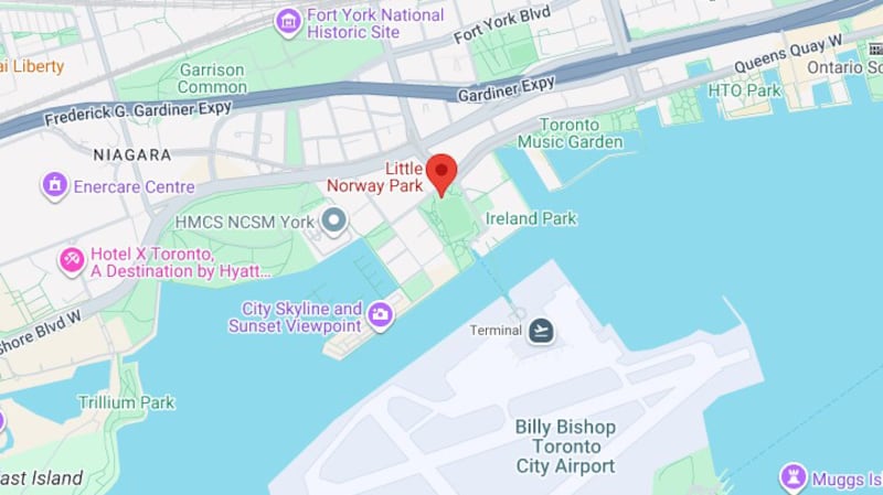 Little Norway Park A map of Little Norway Park in downtown Toronto is pictured. (Google)