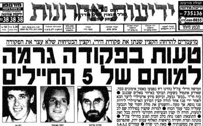 Front page, courtesy of Yediot Aharonot archives, about the training accident at Tseelim, July 1990.