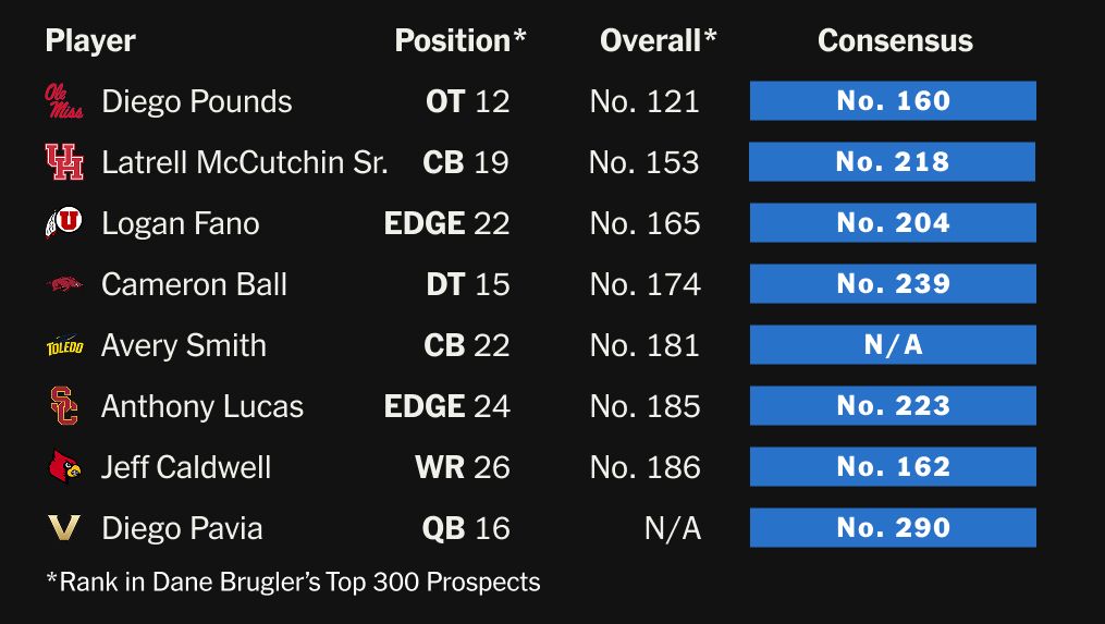 It’s not all bad for the 49ers, No. 31 in my rankings. Drafting receiver De’Zhaun Stribling with the 33rd pick felt like a reach. He was the 77th player in composite rankings and 67th in “The Beast,” after all.