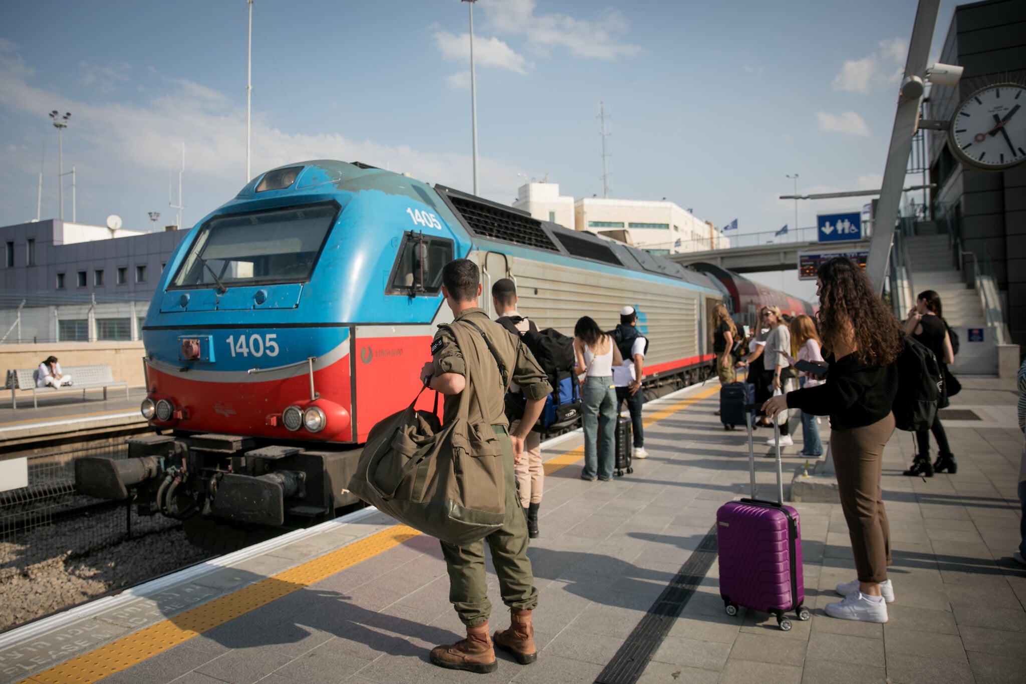 Passengers at the Haifa central train station, November 10, 2024. (Miriam Alster/FLASH90)