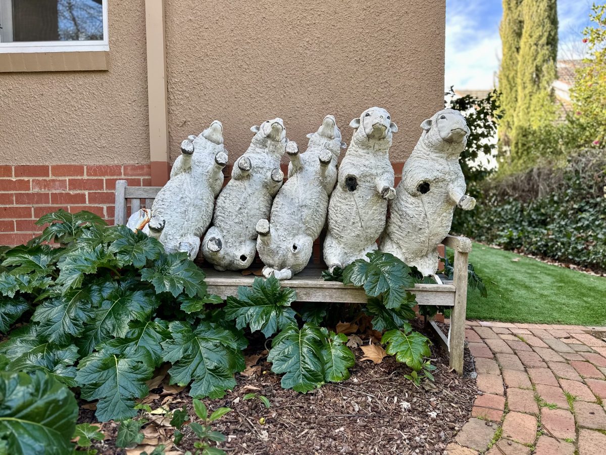 The five sheep, now in various states of amputation and perched on a garden bench, were the first – purchased from a home store in the Canberra Outlet Centre.