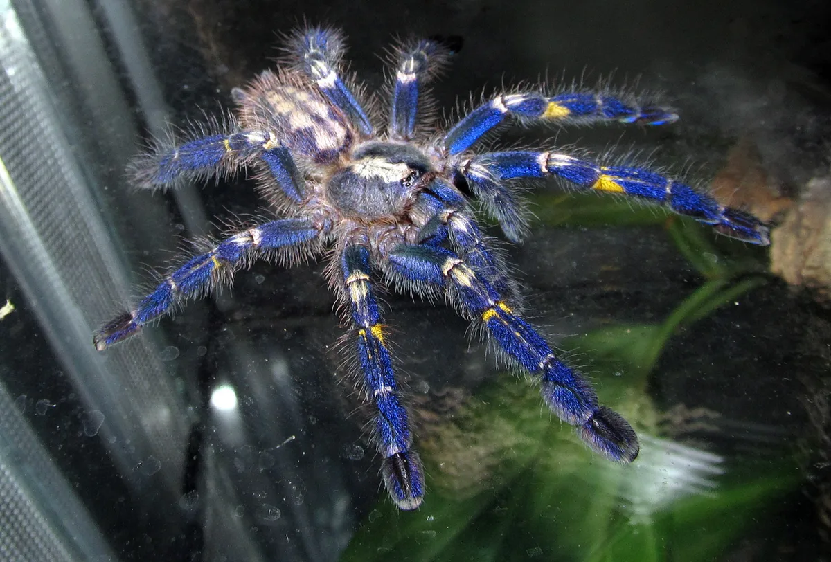 The Gooty sapphire tarantula Poecilotheria metallica, also known as the peacock tarantula, is a strikingly beautiful species of arboreal tarantula. It is well known for its vibrant metallic blue coloration, which makes it one of the most visually striking tarantulas in the world.