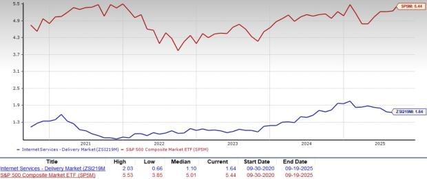 On the basis of forward 12-month price-to-sales (P/S), a commonly used multiple for valuing Internet-Delivery stocks, the industry is currently trading at 1.64X compared with the S&P 500’s 5.44X and the sector’s 7.1X.