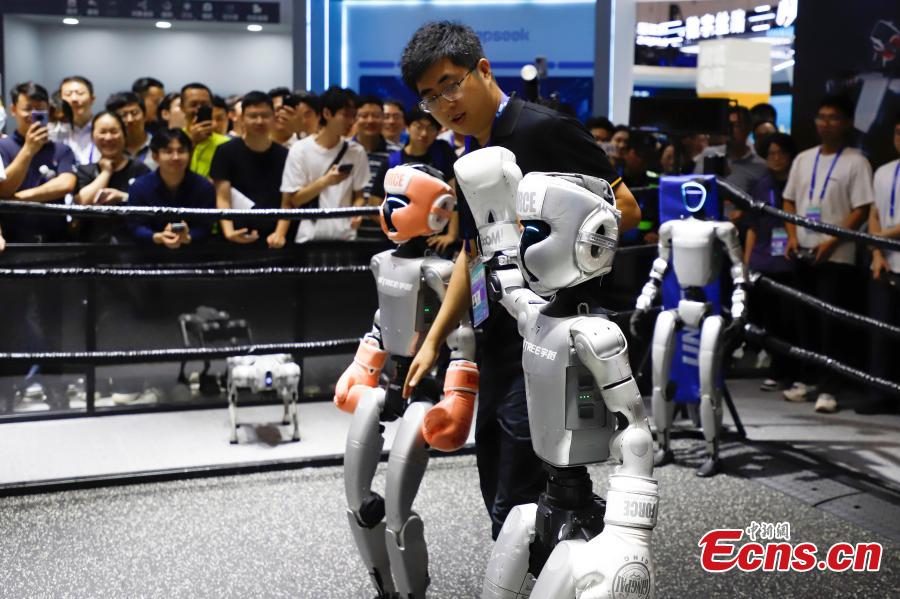 Visitors watch a humanoid robot boxing competition at the 4th Global Digital Trade Expo in Hangzhou, east China’s Zhejiang Province, on Sept. 25, 2025. (Photo provided to China News Service)