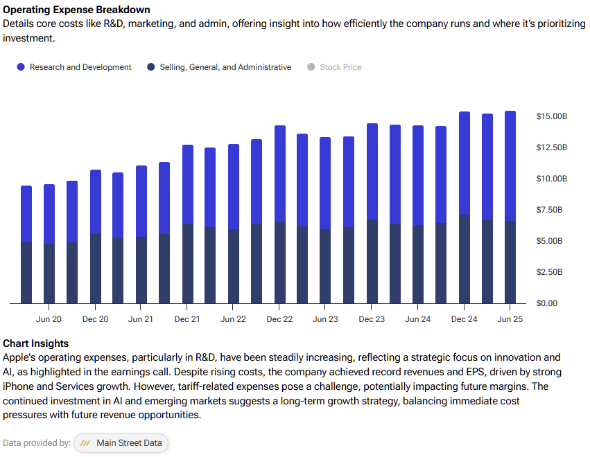 To accelerate development, Apple has acquired seven AI startups in 2025 alone and remains open to more deals. It is also investing $600 billion in U.S.-based infrastructure, including new data centers and manufacturing facilities. This not only supports AI development but also reduces geopolitical risks, strengthens supply chain resilience, and protects margins.