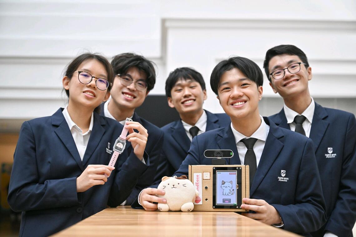 Winning in the polytechnic category was a five-member team from the School of InfoComm Technology at Ngee Ann Polytechnic, who developed MindEase, a tool aimed at addressing stress and burnout among caregivers of those with intellectual disabilities.