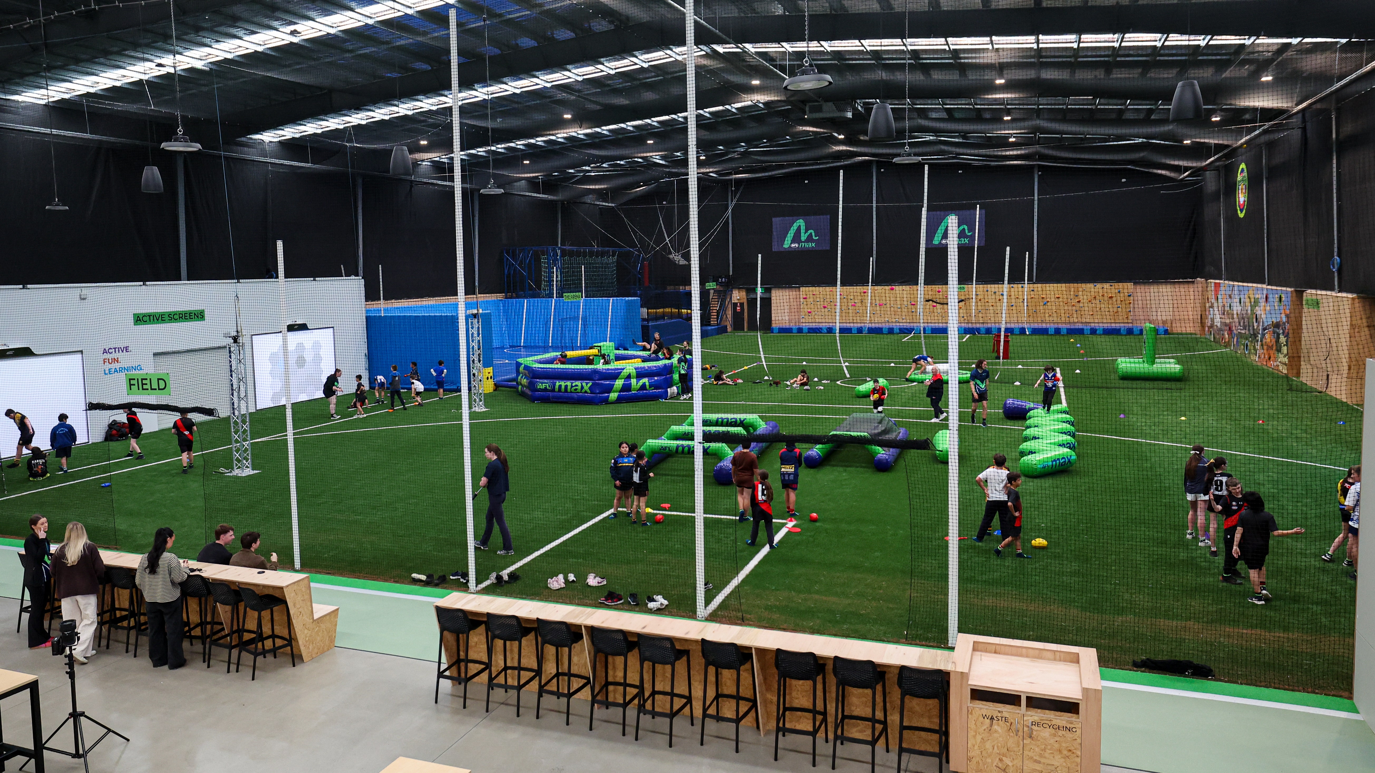 Located next to URBNSURF and adjacent to the Essendon Football Club, AFL Max Melbourne boasts a state-of-the-art indoor footy field, trampolines, climb zones, interactive screens and skill test attractions. It also features five purpose-built party rooms, a café and full commercial kitchen – making it the perfect destination for families, schools and footy fans of all ages.