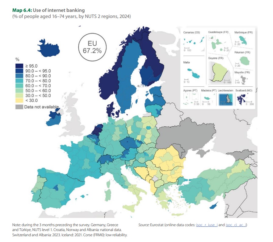 In most Western Balkan countries, the level of usage remains significantly lower than the European average. While the EU average reaches 62.9%, Albania, together with Kosovo, North Macedonia and Bosnia and Herzegovina, ranks in the area where the percentage of employees using the internet at work is often less than 30%.