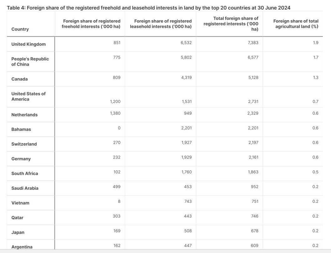 THE area of foreign-owned agricultural land in Australia has grown by 3.3 percent over the 12 months ended 30 June 2024, latest data generated by the Australian Taxation Office shows.
